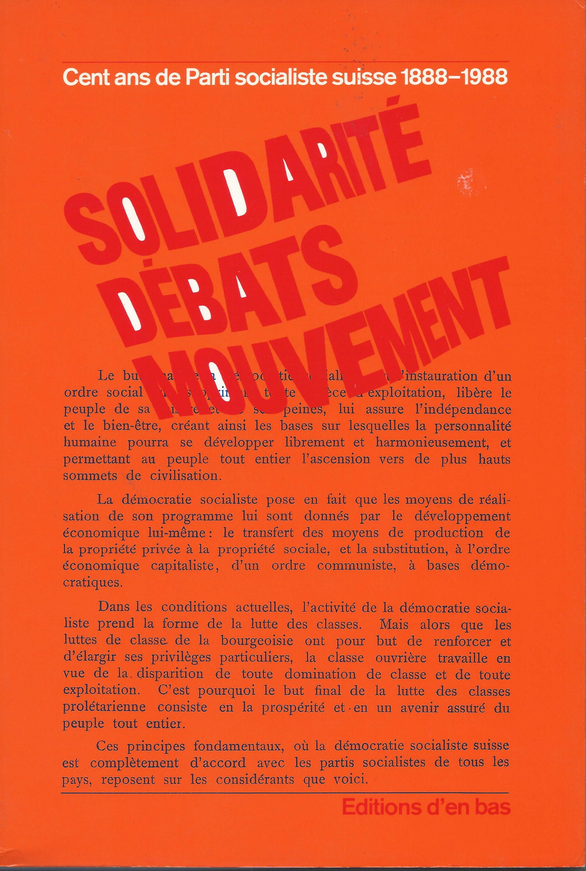 Solidarité, débats, mouvement - Cent ans de Parti socialiste suisse 1888-1988 full version