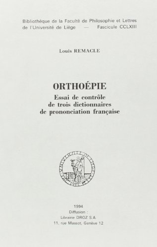 ORTHOEPIE : ESSAI DE CONTROLE DE TROIS DICTIONNAIRES DE PRONONCIATION FRANCAISE full version