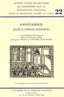 SAVONAROLE. ENJEUX, DEBATS, QUESTIONS. COLLOQUE INTERNATIONAL, PARIS, full version