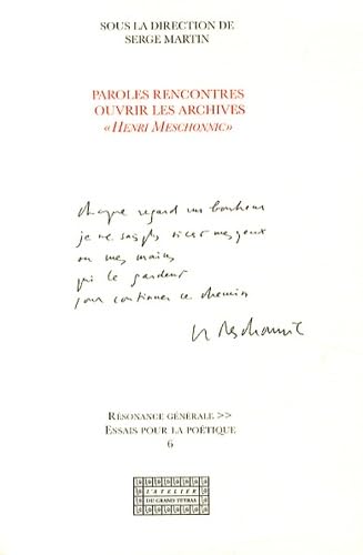 Paroles rencontres - ouvrir les archives Henri Meschonnic full version
