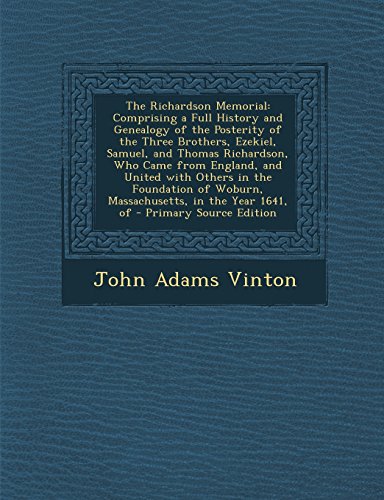 You are about to access our book library "The Richardson Memorial: Comprising a Full History and Genealogy of the Posterity of the Three Brothers, Ezekiel, Samuel, and Thomas Richardson, Who ... Woburn, Massachusetts, in the Year 1641, of full version"
