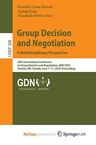 Group Decision and Negotiation: A Multidisciplinary Perspective : 20th International Conference on Group Decision and Negotiation, GDN 2020, Toronto, ON, Canada, June 7-11, 2020, Proceedings full version