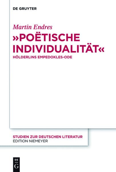 "Poetische Individualitat": Holderlins Empedokles-Ode (Studien Zur Deutschen Literatur) (German Edition) full version
