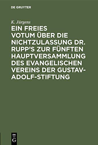 Ein Freies Votum �ber Die Nichtzulassung Dr. Rupp's Zur F�nften Hauptversammlung Des Evangelischen Vereins Der Gustav-Adolf-Stiftung full version
