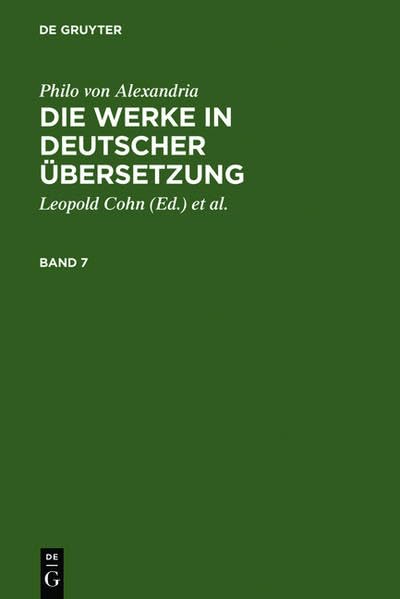 Philo Von Alexandria,; Cohn, Leopold; Heinemann, Isaak; Adler, Maximilian; Theiler, Willy: Die Werke in Deutscher Bersetzung. Band 7: Mit Einem Sachwe (German Edition) full version