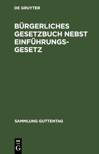 Bürgerliches Gesetzbuch Nebst Einführungsgesetz: Vom 18. August 1896; Mit Berücksichtigung Der Bis 1. April 1919 Ergangenen Abänderungen; Textausgabe ... (Sammlung Guttentag) (German Edition) full version