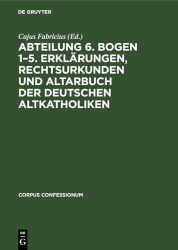 Abteilung 6. Bogen 1-5. Erklärungen, Rechtsurkunden Und Altarbuch Der Deutschen Altkatholiken (Corpus Confessionum, 26) (German Edition) full version