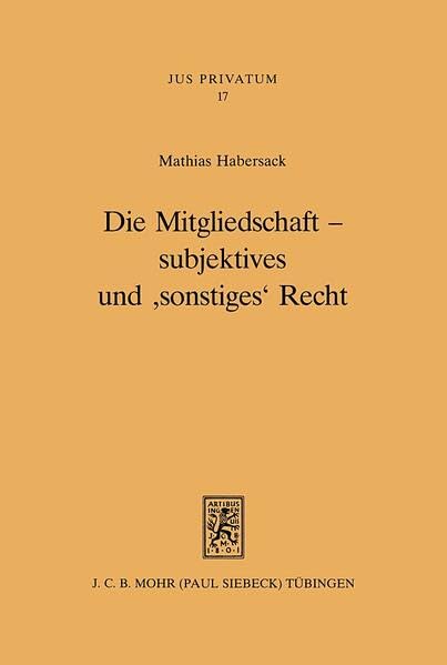 Die Mitgliedschaft - Subjektives Und 'Sonstiges' Recht (Jus Privatum) (German Edition) full version