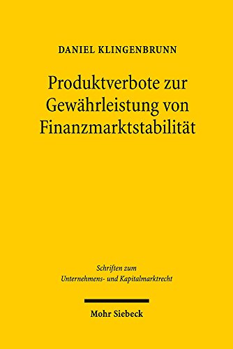 Produktverbote Zur Gewahrleistung Von Finanzmarktstabilitat: Legitimation Und Dogmatik Unter Der Annahme Adaptiver, Evolutionarer Finanzmarkte ... Und Kapitalmarktrecht) (German Edition) full version