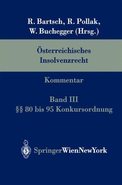 Österreichisches Insolvenzrecht: Band III §§ 80 bis 95 Konkursordnung (German Edition) full version
