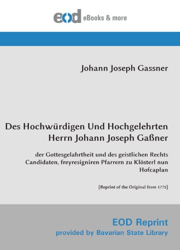 Des Hochwürdigen Und Hochgelehrten Herrn Johann Joseph Gaßner (German Edition) full version