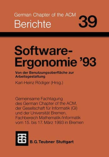 Software-Ergonomie ’93: Von der Benutzungsoberfläche zur Arbeitsgestaltung (Berichte des German Chapter of the ACM) (German Edition) full version