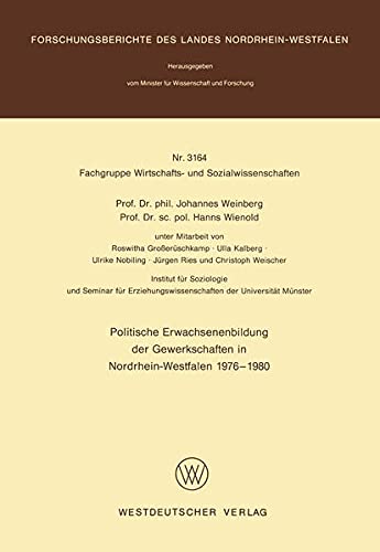 Politische Erwachsenenbildung der Gewerkschaften in Nordrhein-Westfalen 1976 – 1980 (Forschungsberichte des Landes Nordrhein-Westfalen 3164) (German Edition) full version