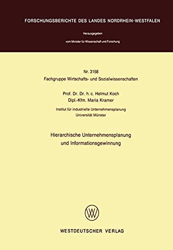 Hierarchische Unternehmensplanung und Informationsgewinnung (Forschungsberichte des Landes Nordrhein-Westfalen 3158) (German Edition) full version