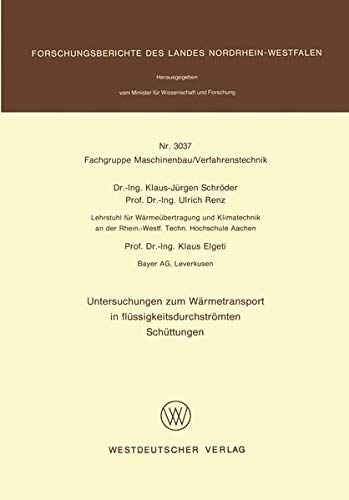 Untersuchungen zum Wärmetransport in flüssigkeitsdurchströmten Schüttungen (Forschungsberichte des Landes Nordrhein-Westfalen 3037) (German Edition) full version