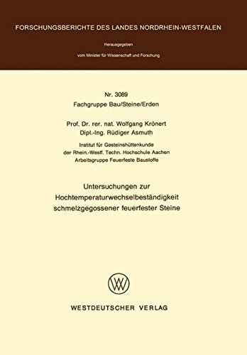 Untersuchungen zur Hochtemperaturwechselbeständigkeit schmelzgegossener feuerfester Steine (Forschungsberichte des Landes Nordrhein-Westfalen 3089) (German Edition) full version