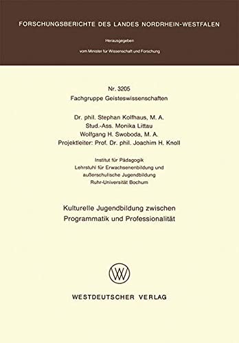 Kulturelle Jugendbildung zwischen Programmatik und Professionalität (Forschungsberichte des Landes Nordrhein-Westfalen 3205) (German Edition) full version