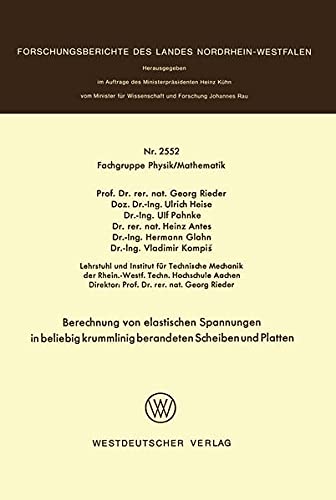 Berechnung von elastischen Spannungen in beliebig krummlinig berandeten Scheiben und Platten (Forschungsberichte des Landes Nordrhein-Westfalen) (German Edition) full version