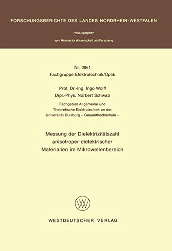 Messung der Dielektrizitätszahl anisotroper dielektrischer Materialien im Mikrowellenbereich (Forschungsberichte des Landes Nordrhein-Westfalen) (German Edition) full version