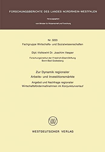 You are about to access our book library "Zur Dynamik regionaler Arbeits- und Investitionsmärkte: Angebot und Nachfrage regionaler Wirtschaftsfördermaßnahmen im Konjunkturverlauf (Forschungsberichte ... Nordrhein-Westfalen 3223) (German Edition) full version"