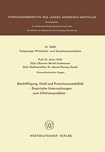 Beschäftigung, Geld und Preisniveaustabilität: Empirische Untersuchungen zum Inflationsproblem (Forschungsberichte des Landes Nordrhein-Westfalen 2638) (German Edition) full version