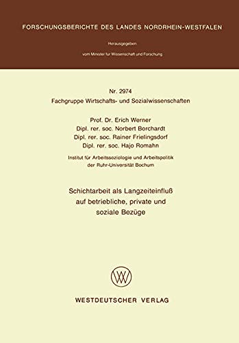 Schichtarbeit als Langzeiteinfluß auf betriebliche, private und soziale Bezüge (Forschungsberichte des Landes Nordrhein-Westfalen 2974) (German Edition) full version