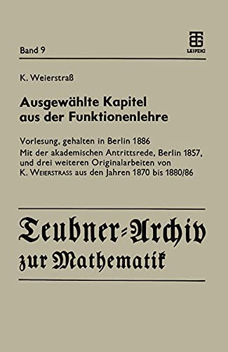You are about to access our book library "Ausgewählte Kapitel aus der Funktionenlehre: Vorlesung, gehalten in Berlin 1886 Mit der akademischen Antrittsrede, Berlin 1857, und drei weiteren Originalarbeiten ... den Jahren 1870 bis 1880/86 (German Edition) full version"