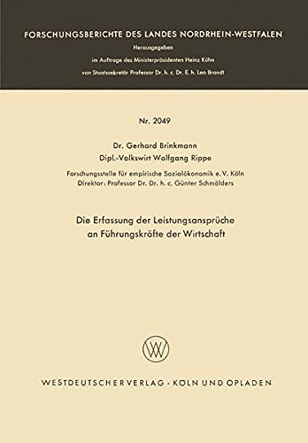Die Erfassung der Leistungsansprüche an Führungskräfte der Wirtschaft (Forschungsberichte des Landes Nordrhein-Westfalen 2049) (German Edition) full version