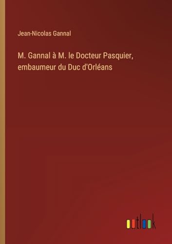 M. Gannal à M. le Docteur Pasquier, embaumeur du Duc d'Orléans (French Edition) full version
