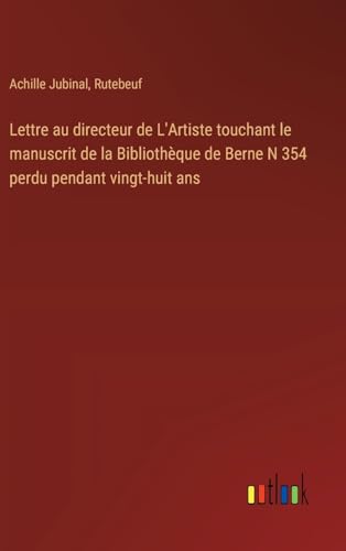 Lettre au directeur de L'Artiste touchant le manuscrit de la Bibliothèque de Berne N 354 perdu pendant vingt-huit ans (French Edition) full version