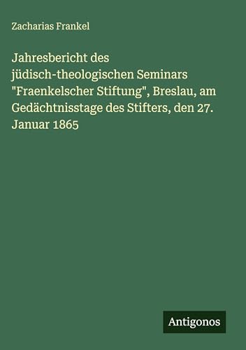 Jahresbericht des jüdisch-theologischen Seminars "Fraenkelscher Stiftung", Breslau, am Gedächtnisstage des Stifters, den 27. Januar 1865 full version