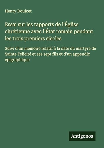 You are about to access our book library "Essai sur les rapports de l'Église chrétienne avec l'État romain pendant les trois premiers siècles: Suivi d'un memoire relatif à la date du martyre ... ses sept fils et d'un appendic épigraphique full version"