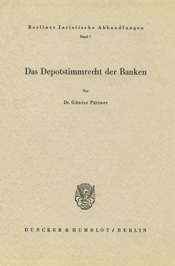 Das Depotstimmrecht Der Banken (Berliner Juristische Abhandlungen, 7) (German Edition) full version