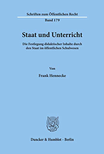 Staat Und Unterricht: Die Festlegung Didaktischer Inhalte Durch Den Staat Im Offentlichen Schulwesen (Schriften Zum Offentlichen Recht, 179) (German Edition) full version