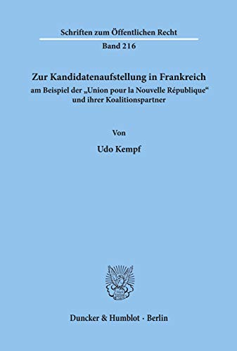 Zur Kandidatenaufstellung in Frankreich Am Beispiel Der 'Union Pour La Nouvelle Republique' Und Ihrer Koalitionspartner (Schriften Zum Offentlichen Recht) (German Edition) full version