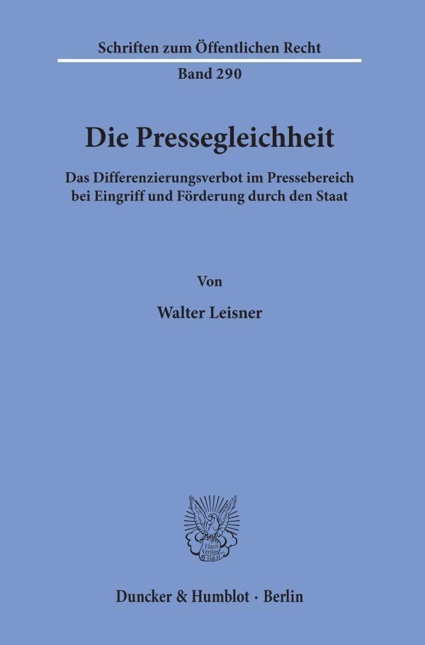 Die Pressegleichheit: Das Differenzierungsverbot Im Pressebereich Bei Eingriff Und Forderung Durch Den Staat (Schriften Zum Offentlichen Recht, 290) (German Edition) full version