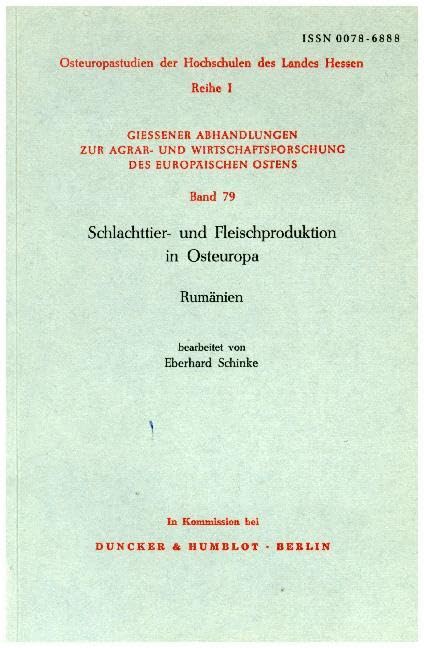 Schlachttier- Und Fleischproduktion in Osteuropa: Rumanien (Giessener Abhandlungen Zur Agrar- Und Wirtschaftsforschung Des Europaischen Ostens) (German Edition) full version