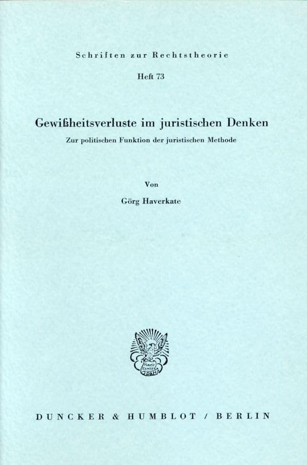 Gewissheitsverluste Im Juristischen Denken: Zur Politischen Funktion Der Juristischen Methode (Schriften Zur Rechtstheorie, 73) (German Edition) full version