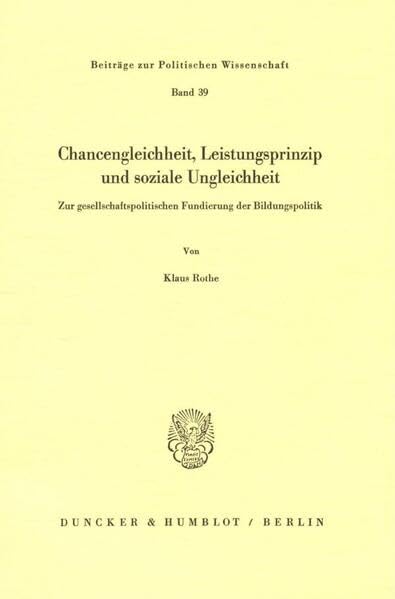 Chancengleichheit, Leistungsprinzip Und Soziale Ungleichheit: Zur Gesellschaftspolitischen Fundierung Der Bildungspolitik (Beitrage Zur Politischen Wissenschaft, 39) (German Edition) full version