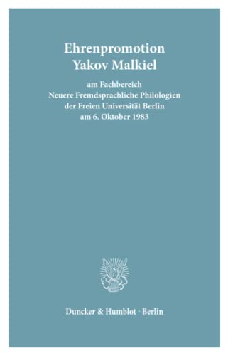 Ehrenpromotion Yakov Malkiel: Am Fb Neuere Fremdsprachliche Philologien Der Fu Berlin (German Edition) full version