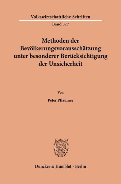 Methoden Der Bevolkerungsvorausschatzung Unter Besonderer Berucksichtigung Der Unsicherheit (Volkswirtschaftliche Schriften) (German Edition) full version