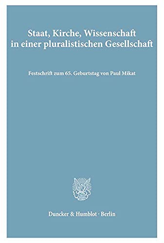 Staat, Kirche, Wissenschaft in Einer Pluralistischen Gesellschaft: Festschrift Zum 65. Geburtstag Von Paul Mikat (German Edition) full version