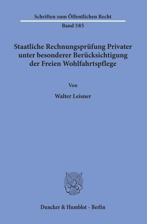 Staatliche Rechnungsprufung Privater, Unter Besonderer Berucksichtigung Der Freien Wohlfahrtspflege (Schriften Zum Offentlichen Recht, 585) (German Edition) full version