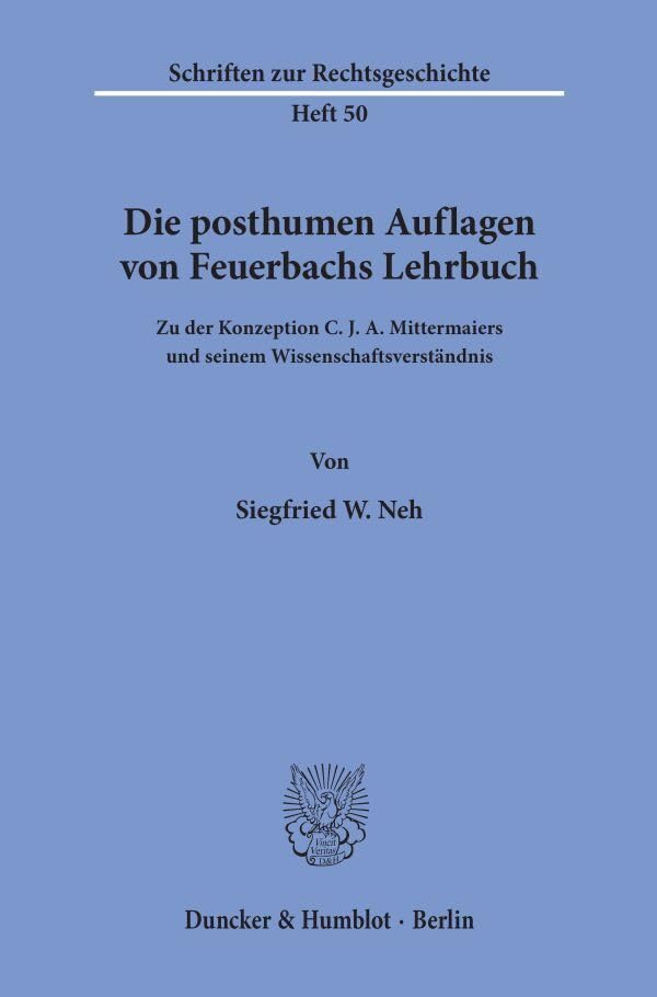 Die Posthumen Auflagen Von Feuerbachs Lehrbuch: Zu Der Konzeption C. J. A. Mittermaiers Und Seinem Wissenschaftsverstandnis (Schriften Zur Rechtsgeschichte, 50) (German Edition) full version