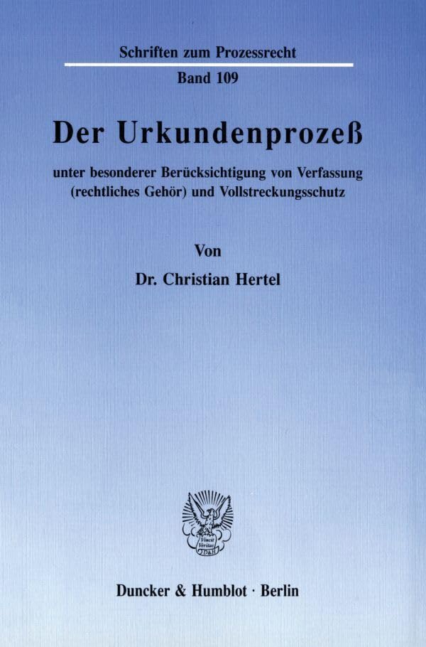 Der Urkundenprozess Unter Besonderer Berucksichtigung Von Verfassung Rechtliches Gehor Und Vollstreckungsschutz (Schriften Zum Prozessrecht, 109) (German Edition) full version
