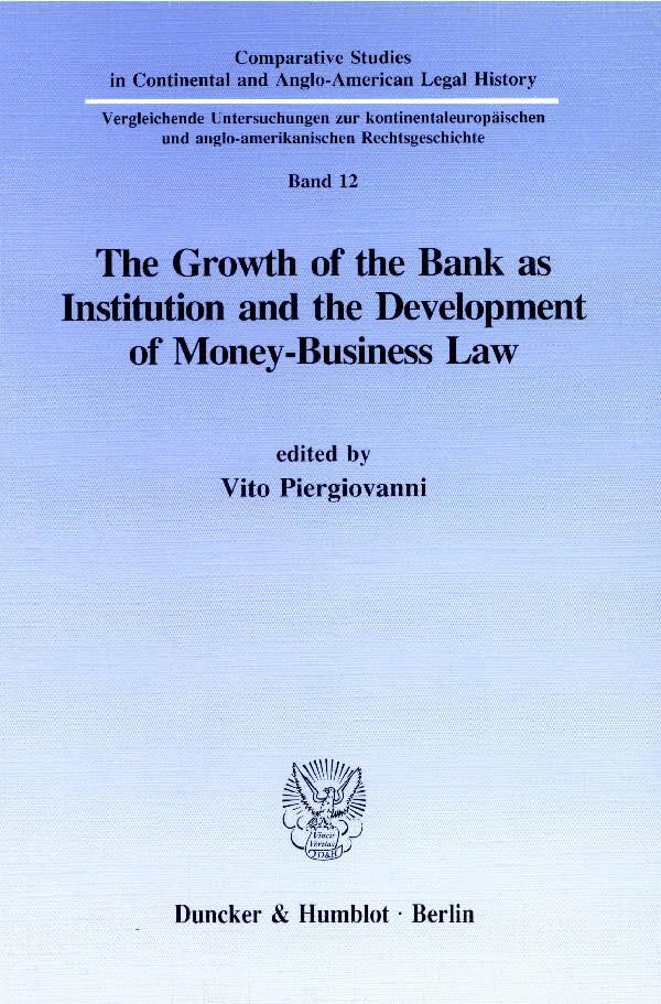The Growth of the Bank As Institution and the Development of Money-business Law (Comparative Studies in Continental and Anglo-american Legal History, 12) full version