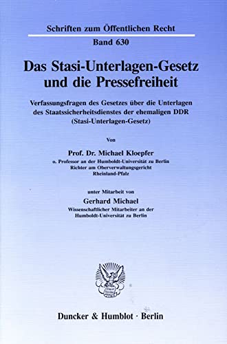 You are about to access our book library "Das Stasi-Unterlagen-Gesetz Und Die Pressefreiheit: Verfassungsfragen Des Gesetzes Uber Die Unterlagen Des Staatssicherheitsdienstes Der Ehemaligen ... Zum Offentlichen Recht, 630) (German Edition) full version"