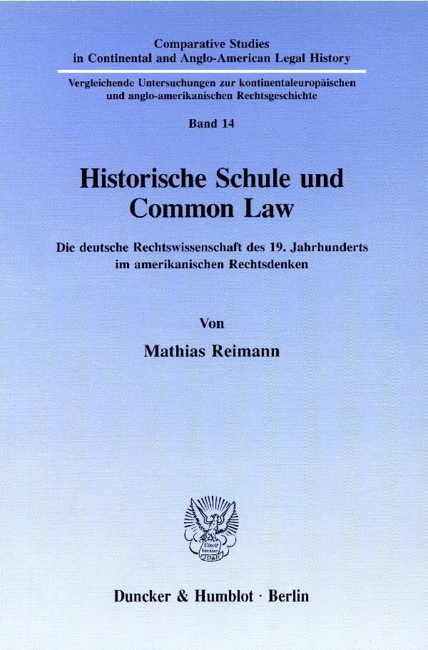 Historische Schule Und Common Law: Die Deutsche Rechtswissenschaft Des 19. Jahrhunderts Im Amerikanischen Rechtsdenken (Comparative Studies in ... Legal History, 14) (German Edition) full version