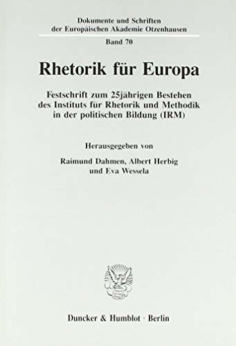 Rhetorik Fur Europa: Festschrift Zum 25jahrigen Bestehen Des Instituts Fur Rhetorik Und Methodik in Der Politischen Bildung Irm (Dokumente Und ... Akademie Otzenhausen, 70) (German Edition) full version
