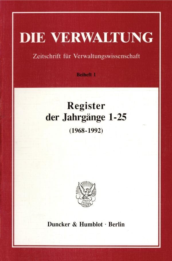 Register Der Jahrgange 1-25 Der Zeitschrift Die Verwaltung 1968-1992 (Die Verwaltung. Beihefte, 1) (German Edition) full version
